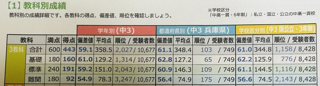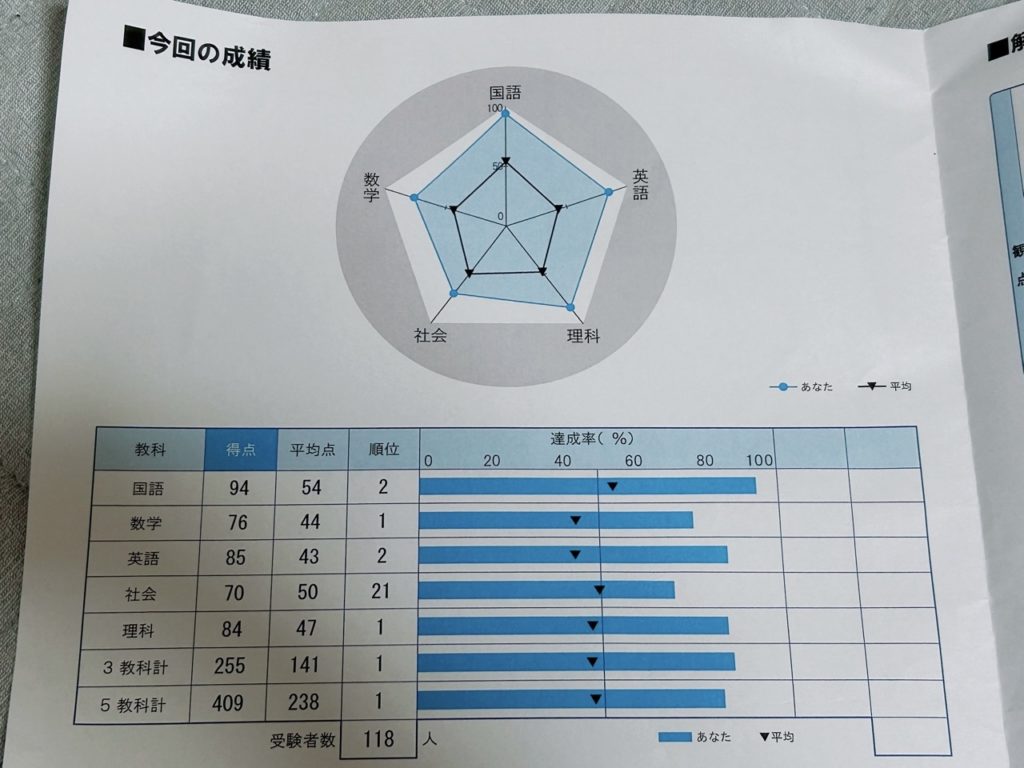 最近中学で受けた実力テストの結果はこんな感じ。よく頑張りました。