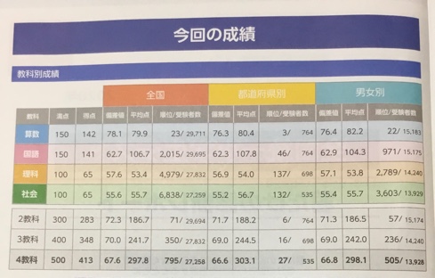 十分良い結果です。親として欲を言えば社会が偏差値50点あればもう大満足だったかな。